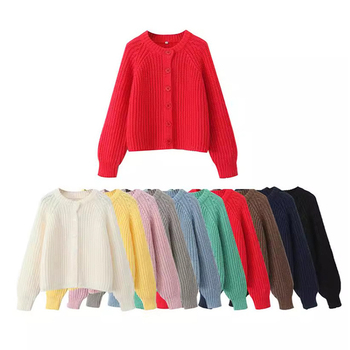 2025 suéter informal de mujer de diseño personalizado cárdigan de punto de Color puro elegante para mujer para primavera