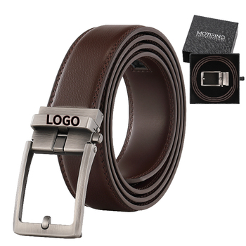 Cinturón de trinquete de cuero de vaca real con división automática marrón de negocios con logotipo personalizado con caja Cinturón de cuero genuino para hombres